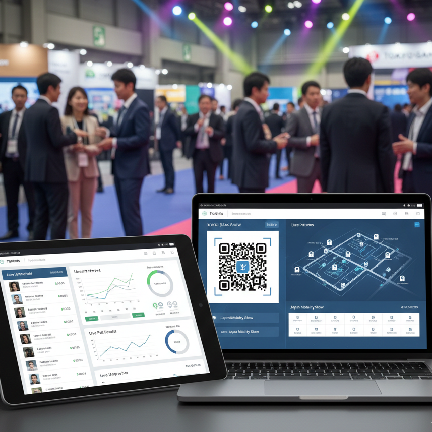具体的には、スケジュール表示や会場マップ、ライブ配信機能に加え、回遊ログやリアルタイム投票といったインタラクティブな機能の提供が可能です。Japan Mobility ShowやBizcrew EXPOといった大規模イベントでの導入実績が示す通り、その信頼性は非常に高く、参加者がストレスなく楽しめる環境をスピーディーに構築できます。