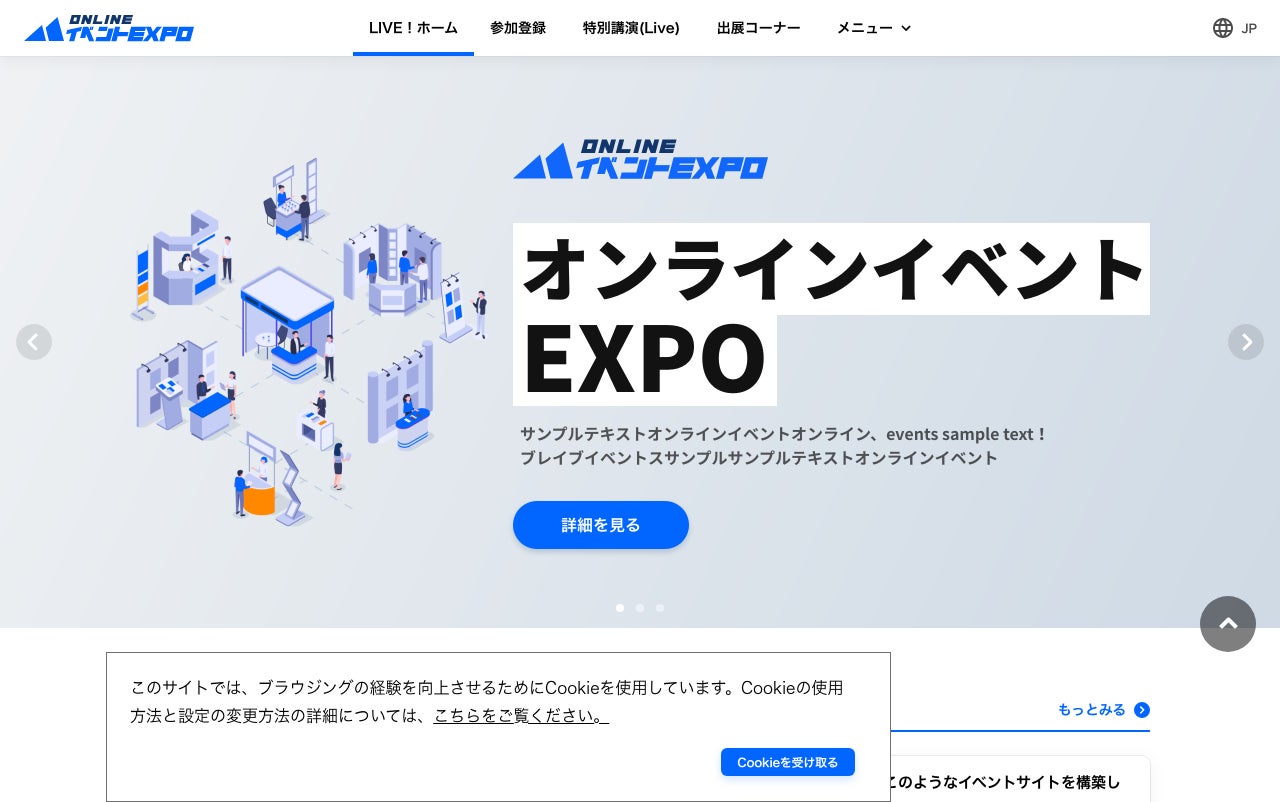 eventos(https://eventos.tokyo/)はオンラインイベント・リアルイベント双方に対応可能なイベントの公式WEB・アプリを短期間で作成、公開可能なプラットフォームです。