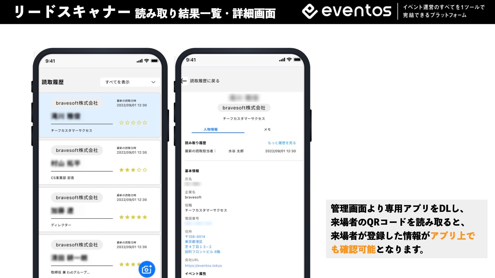 300万人以上のユーザーに利用されているイベントプラットフォーム「eventos(イベントス)、https://eventos.tokyo/」を提供するbravesoft株式会社(本社:東京都港区、代表取締役:菅澤英司、https://bravesoft.co.jp/)は、2022年1月30日にリードスキャナーをリリースいたしました。