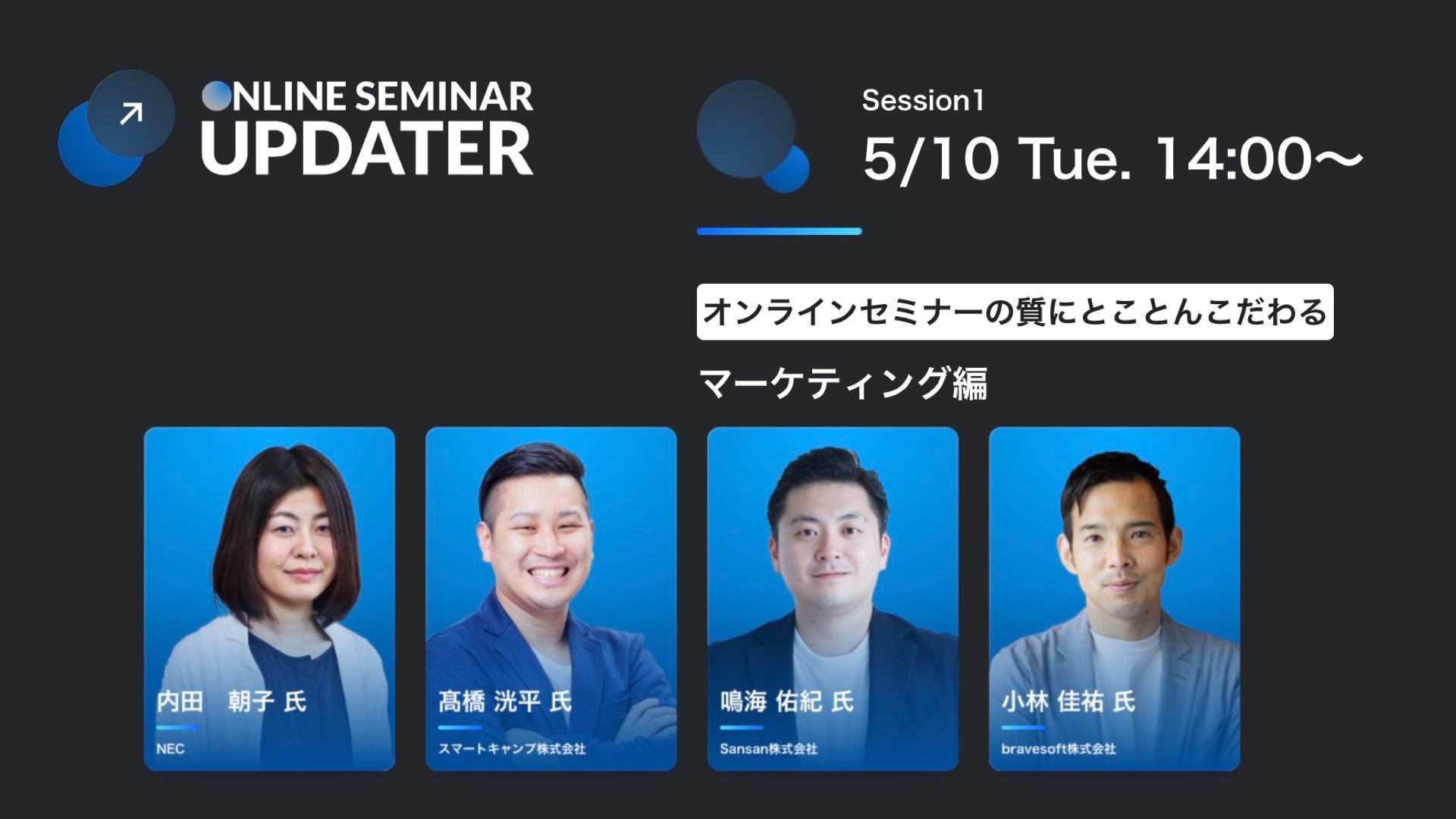 2022年5月10日、法人向け及び個人向けの名刺管理サービスを提供し、ビジネスチャンス創出を提供するSansan株式会社様と共催で、ONLINE SEMINAR UPDATER 2022 Springを開催いたします。