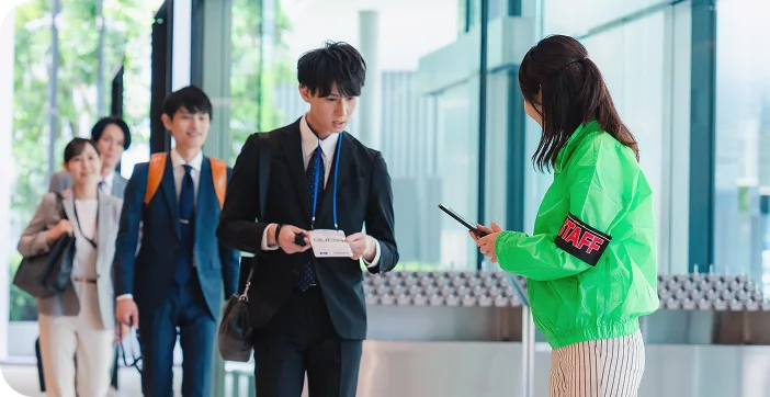 独自のAR認識エンジンにより、ピント合わせを待つことなく「瞬時」にコードを検知。手ブレや遠距離、斜めからのスキャンにも強く、歩きながらのチェックインさえも可能にします。受付スタッフの負担を減らし、来場者を待たせない「ノンストップ入場」を実現します。