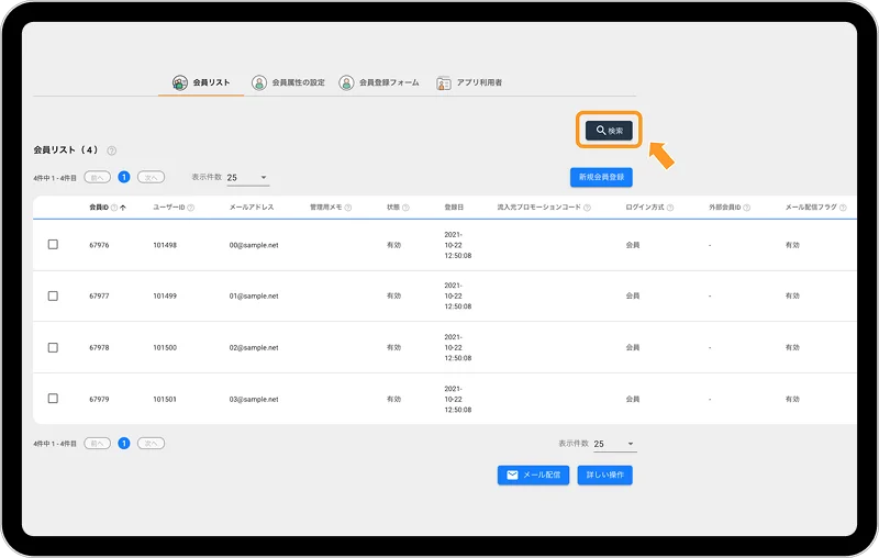 登録属性や来場ステータス、行動履歴に基づいたセグメント配信に対応。