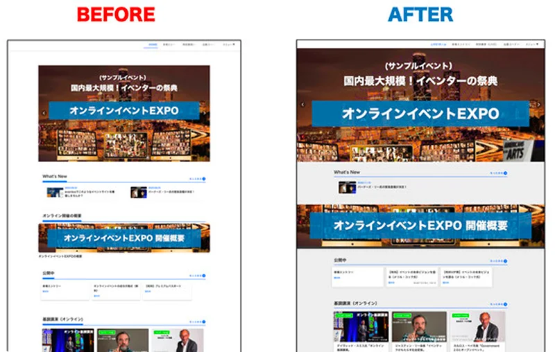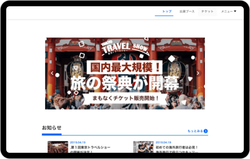 カンファレンス、展示会など、多様なシーンに最適化されたデザインテンプレートを用意。目的に合わせた型を選ぶだけで、構成に迷うことなくスピーディーに立ち上げが可能です。