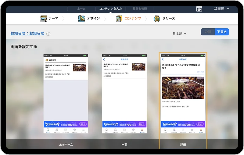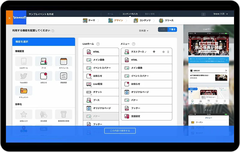 ブランドガイドラインやイベントの狙いに沿って、bravesoftが最適なデザインを企画・制作。既存テンプレートでは表現しきれないこだわりにも対応します。