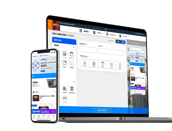 初心者でも直感的に作れるノーコード機能と、開発者が自在に編集できる高度なカスタマイズ環境を両立。イベントの世界観を妥協なく表現できます。